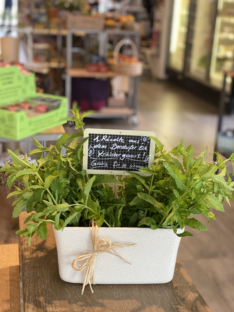 Küchenkräuter werden frisch geerntet im Laden verkauft und in unseren Tagegerichten verabeitet.