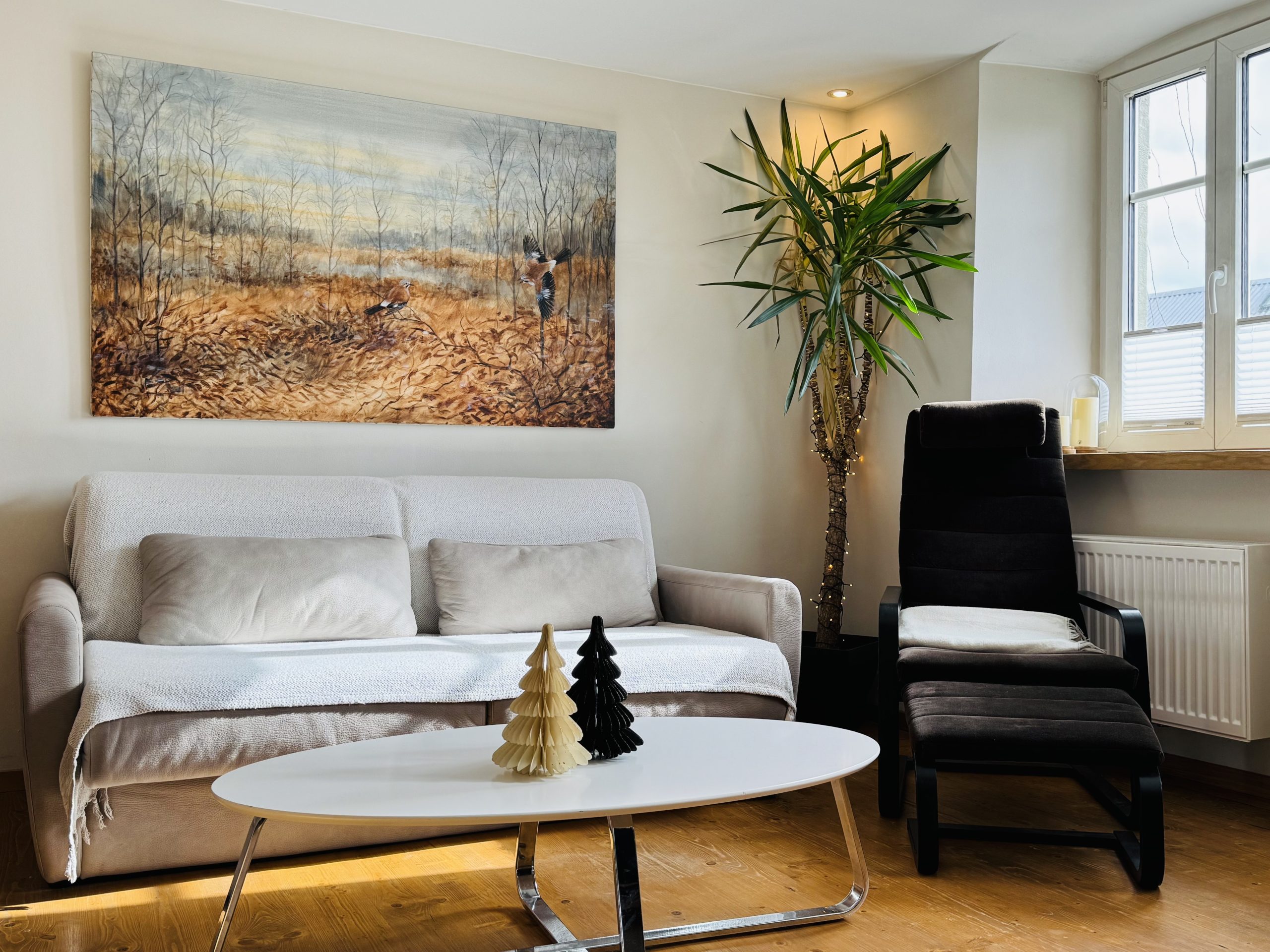 – L’appartement a été rénové de fond en comble avec des matériaux locaux et durables, avec amour et en grande partie de manière autonome.