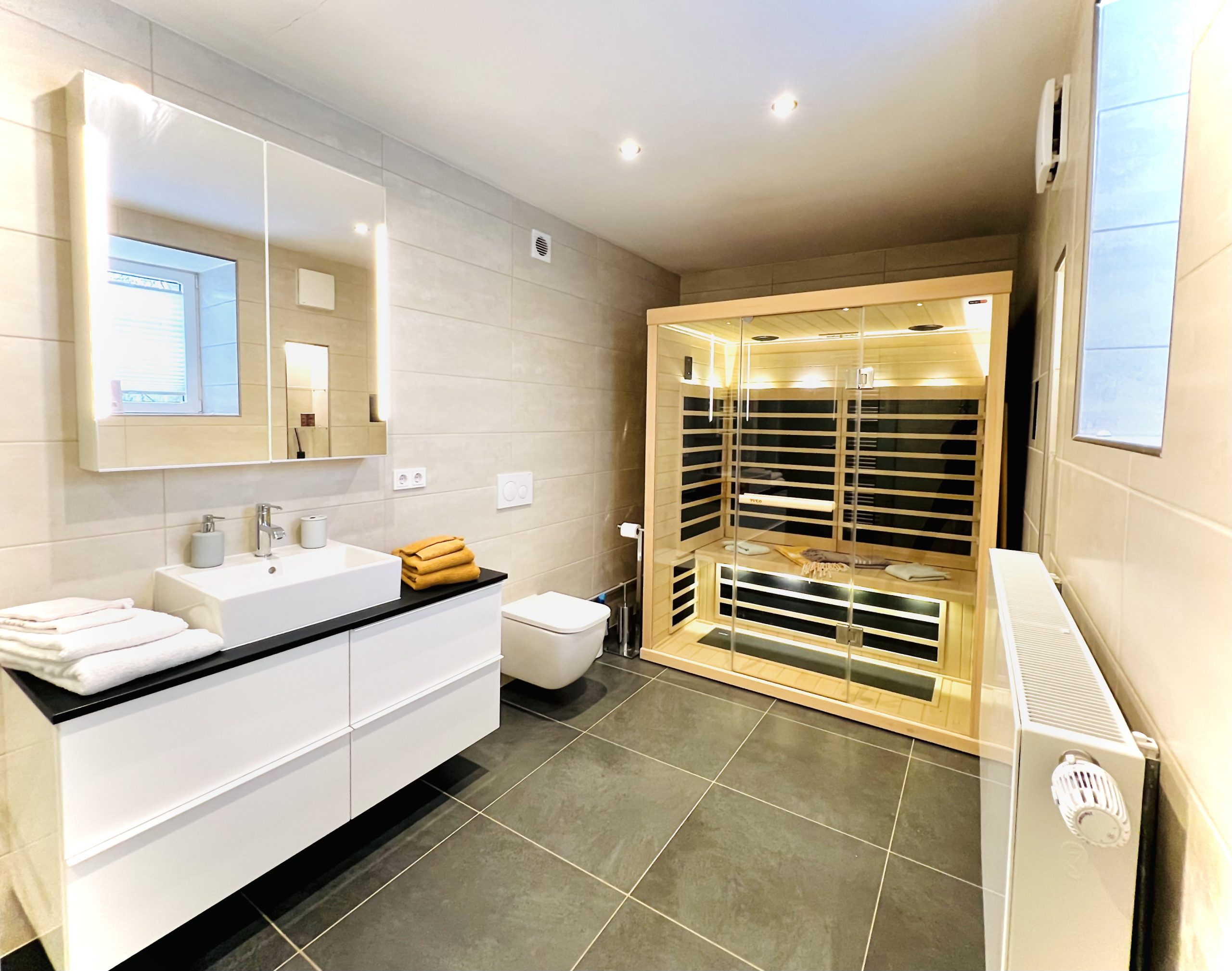 Qualité & innovation : un équipement ultramoderne, une connexion internet haut débit, une smart TV et un sauna infrarouge offrent un confort et un bien-être de haut niveau. La recharge des voitures électriques est possible grâce à l’installation photovoltaïque alimentée à 100 % en courant vert.