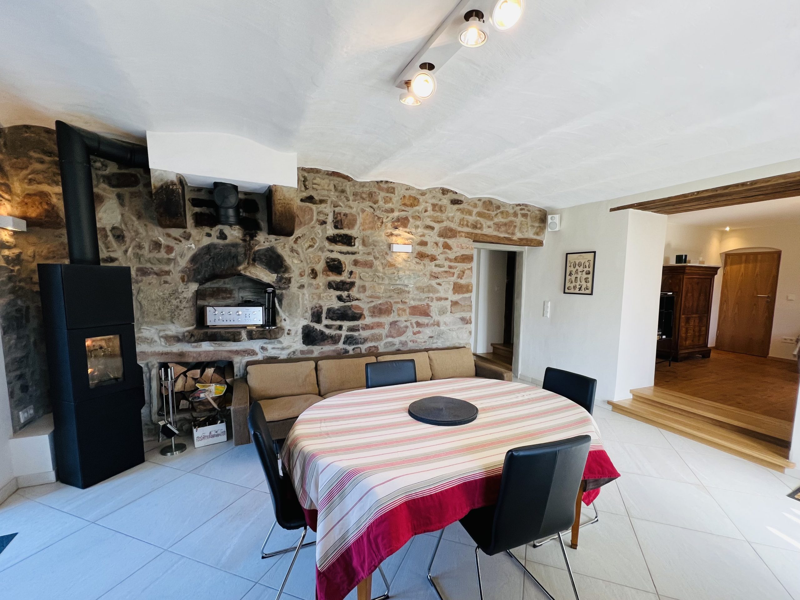 – De nombreux éléments, comme le four à pain et les poutres en bois, ont été délibérément conservés et intégrés avec style.