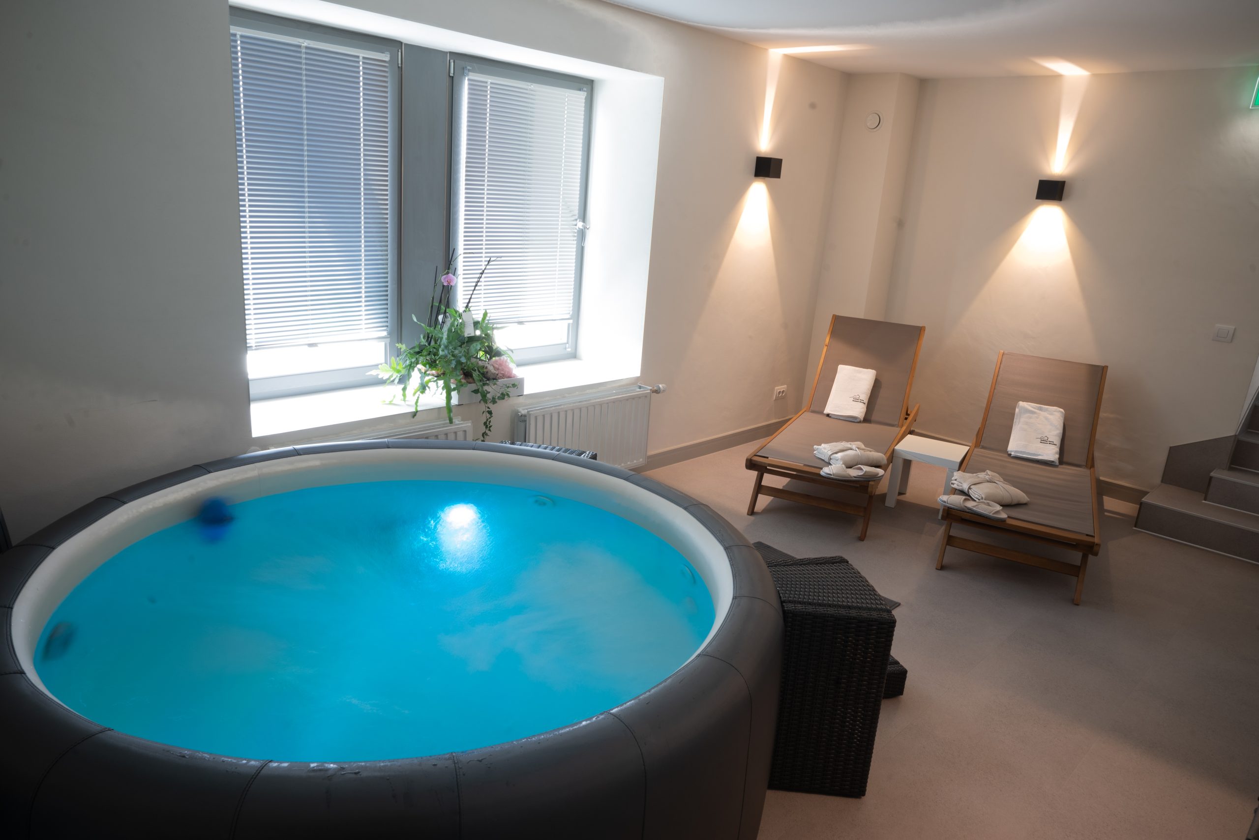 Outre les chambres doubles spacieuses, modernes et charmantes avec salle de bain privée, nos clients peuvent se réjouir d’un espace bien-être intégré et donc privé. Un jacuzzi pour 4 personnes, un sauna, une cabine infrarouge ainsi que plusieurs chaises longues invitent à la détente et au repos. En outre, la soirée peut se terminer en toute convivialité au bar de l’hôtel ou dans la salle de séjour confortable et se remplir d’une foule de moments de bonheur. En cuisinant ensemble dans la cuisine entièrement équipée, lors d’un barbecue estival sur la grande place de grillade privée ou sur la terrasse avec l’aire de jeux pour enfants adjacente, les souvenirs de vacances inoubliables s’écrivent comme par enchantement.
