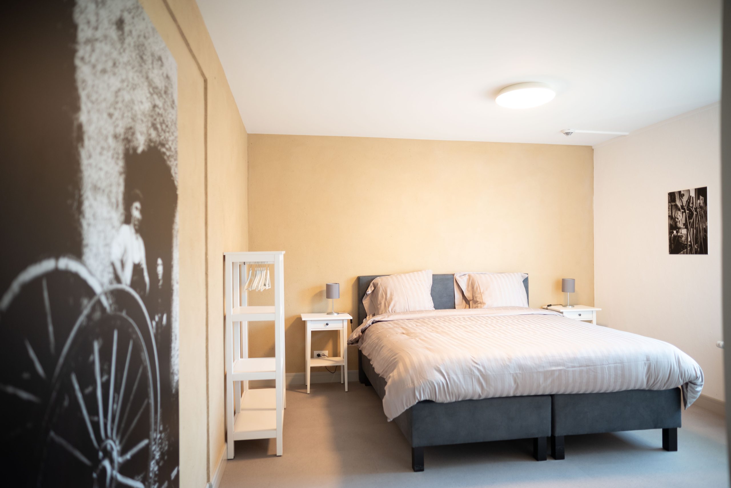 L’aménagement de l’ensemble de la maison de vacances a également été particulièrement soigné pour lui donner une ambiance rustique. A côté du « Holiday Home Museum Binsfeld » se trouve en effet le musée rural « A Schiewesch », également propriété de l’« Interessenverein Binsfeld-Holler-Breidfeld ». Ce musée présente avec beaucoup de cœur et d’amour du détail l’ancienne vie du village de la région de manière authentique. Nous avons poursuivi le même objectif avec la même passion dans le « Holiday Home Museum Binsfeld » : malgré un équipement ultramoderne, la vie qui régnait autrefois dans la maison « Bei Glesener » doit être transmise à nos hôtes. Nous avons cherché à créer un mélange entre la discrétion et la présence, et nous pouvons affirmer avec prudence que nous n’y sommes pas mal parvenus. Chaque chambre a son propre thème (exemples : chez le forgeron, dans la chambre d’enfant, à l’école, …) et a donc un charme très particulier. Un grand merci au club photo local « Camera on t’Our » sans le soutien duquel cela n’aurait pas été possible. Le placement délibéré de plusieurs objets issus de la vaste collection du musée rural « A Schiewesch » complète parfaitement le concept derrière cet aménagement rustique.