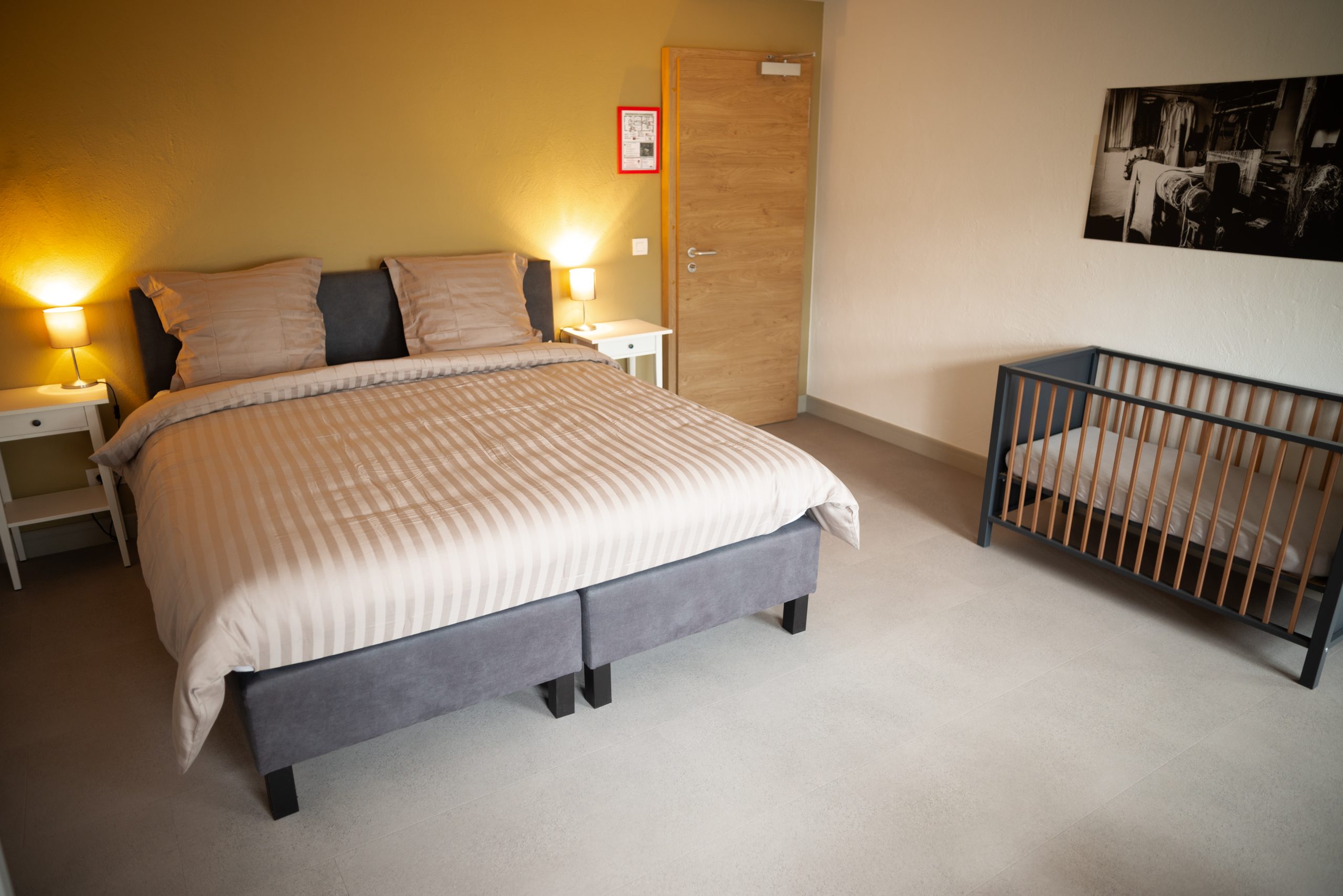 Après quelques années, le vent a tourné et, pour des raisons financières, les deux gîtes ont été loués à des personnes socialement défavorisées afin de leur garantir un revenu régulier. Comme les réservations pour le gîte d’étape étaient en baisse, il fallait trouver une solution et l’idée d’une maison de vacances spacieuse et d’un certain standing est née. Les grandes chambres à plusieurs lits qui avaient survécu, appelées « dortoirs », devaient être transformées en 10 chambres à deux lits avec, pour la plupart, une salle de bain et une douche privées. L’intimité gagnée, le confort devait également augmenter et nous avons donc misé sur des lits sommier tapissier confortables. Aussitôt dit, aussitôt fait ! Après une planification détaillée, nous nous sommes immédiatement attelés à la réalisation en 2021.